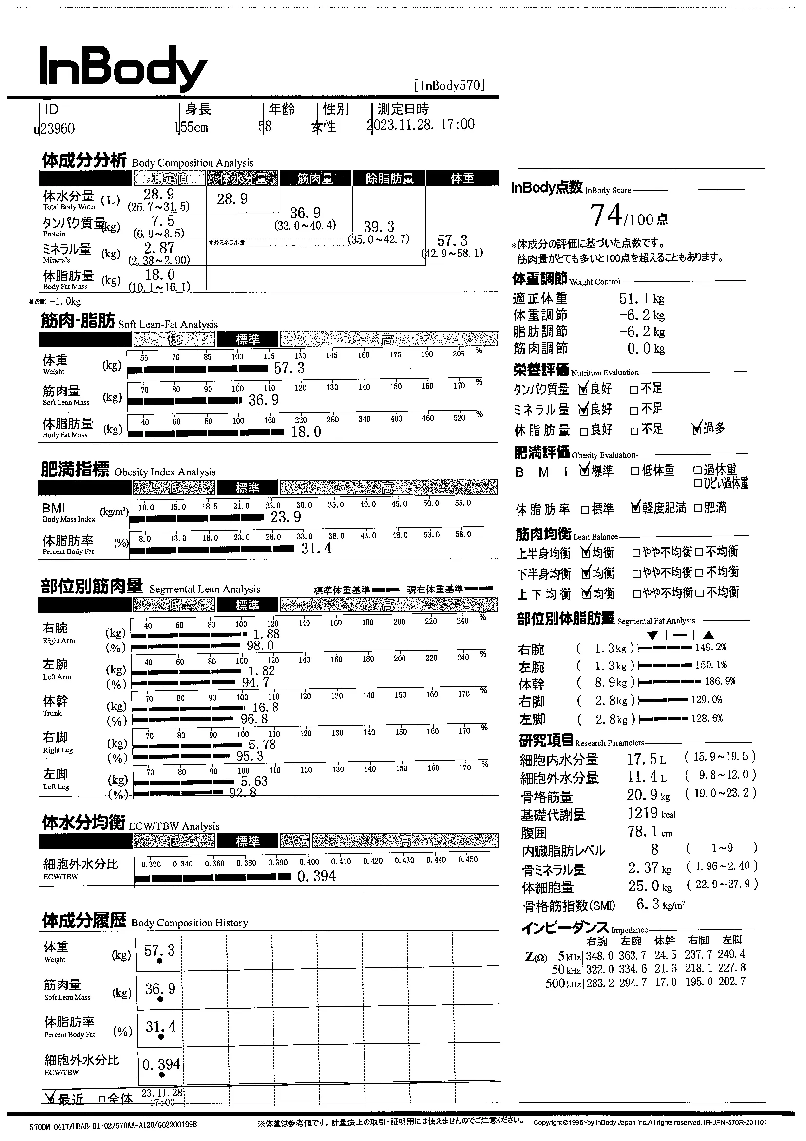 inbody計測結果