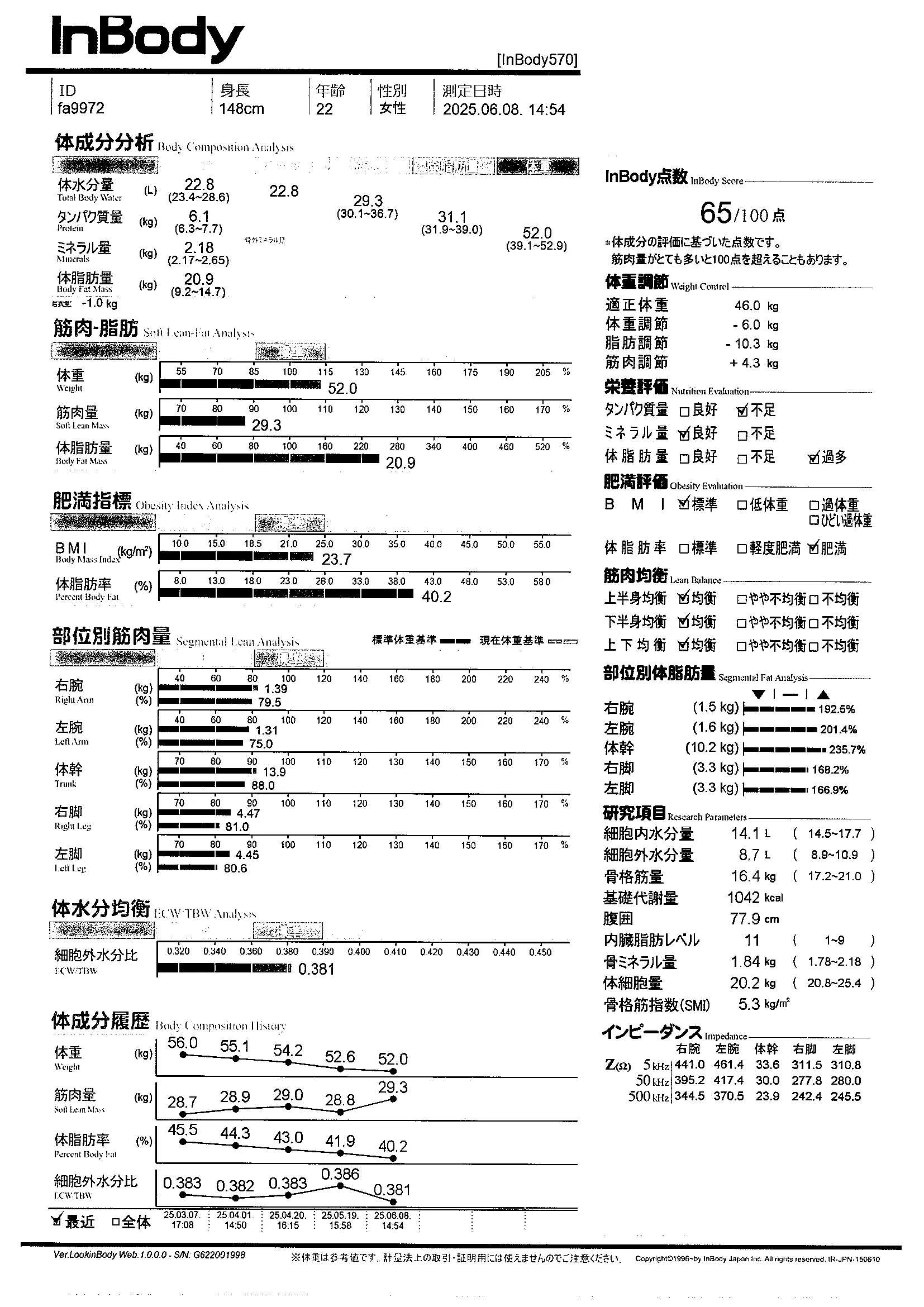 inbody計測結果
