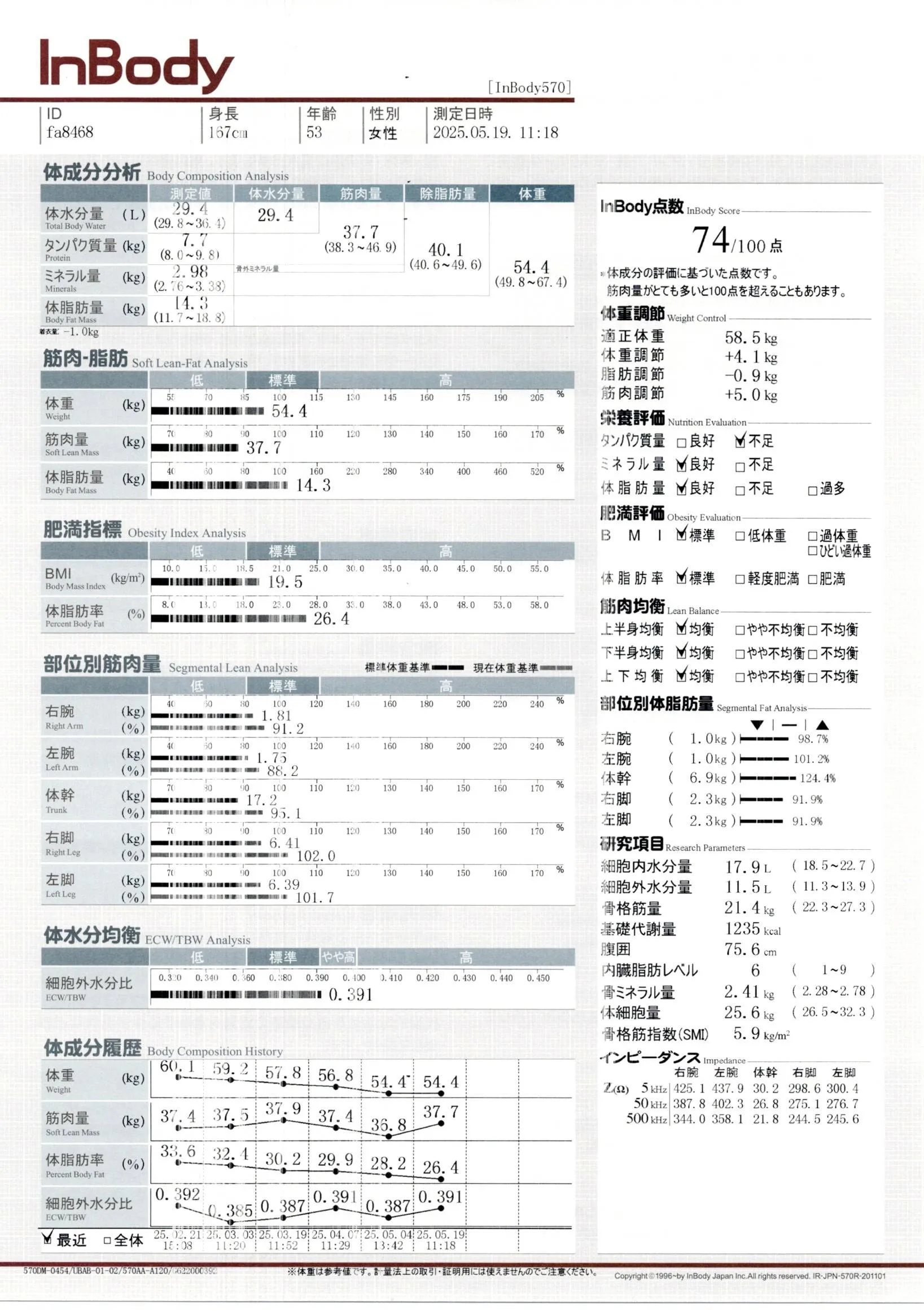 inbody計測結果