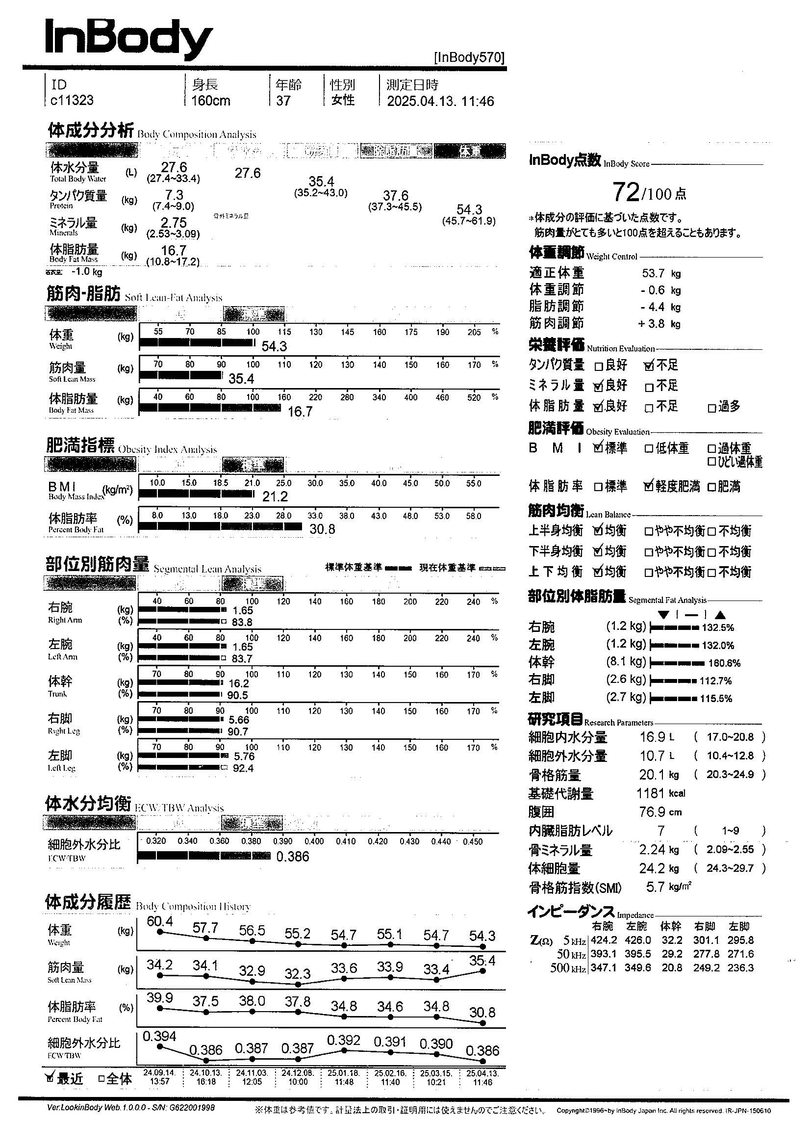 症例No.00095|60.4kg→54.3kg(30代女性・160cm)