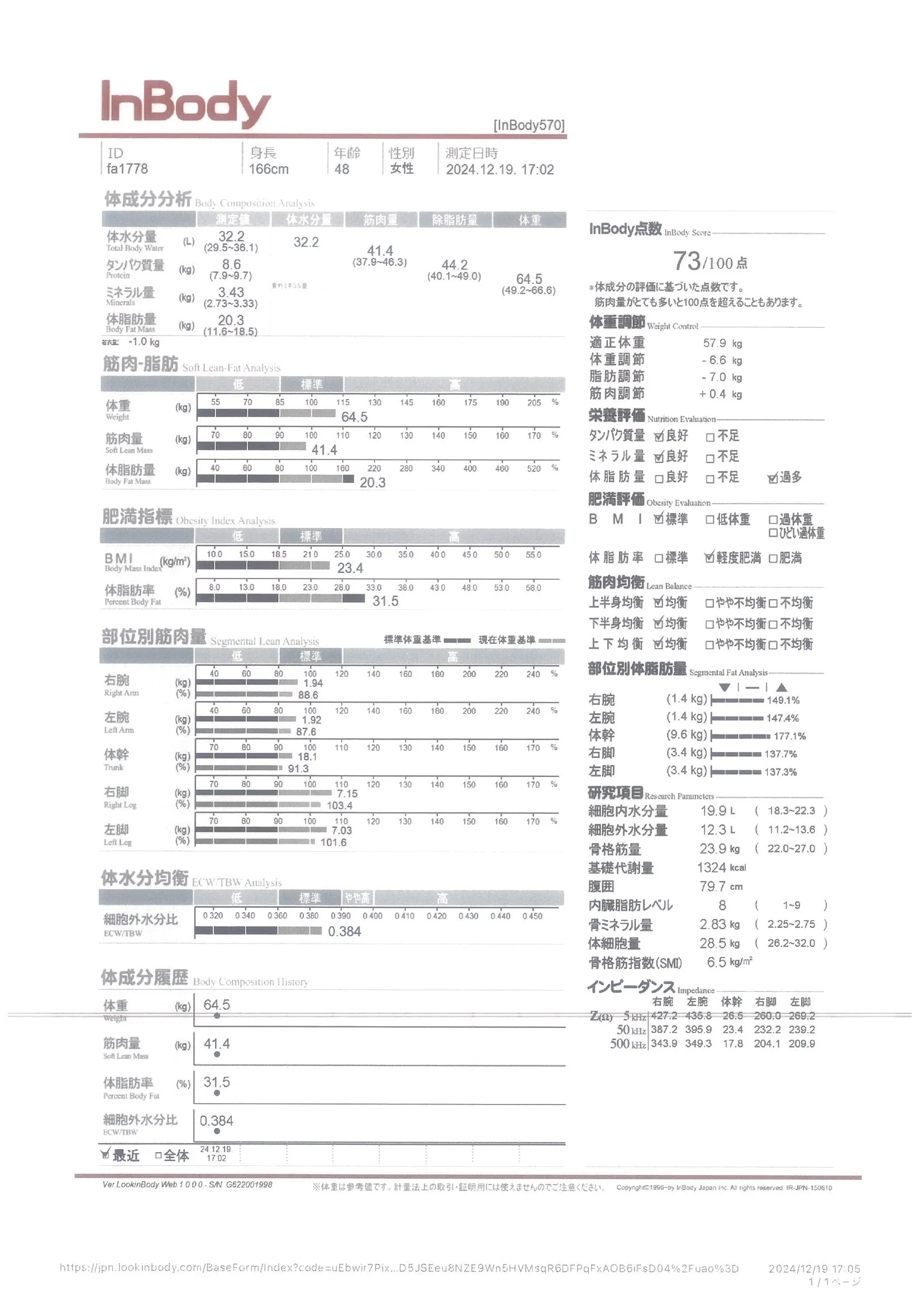 症例No.00173|64.0kg→51.6kg(50代女性・162.8cm)