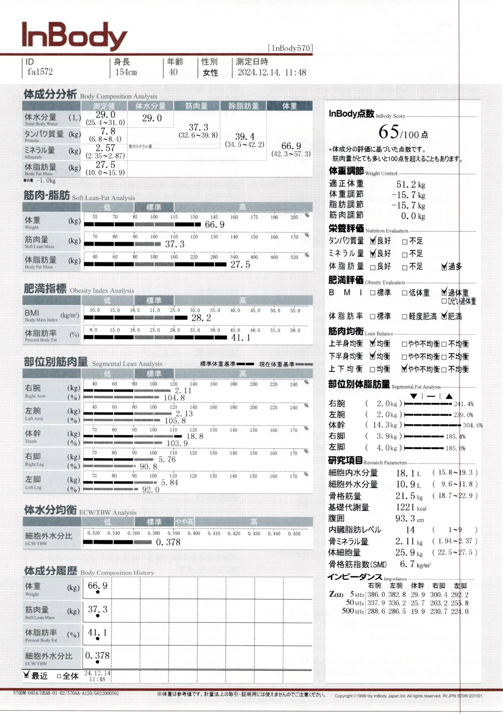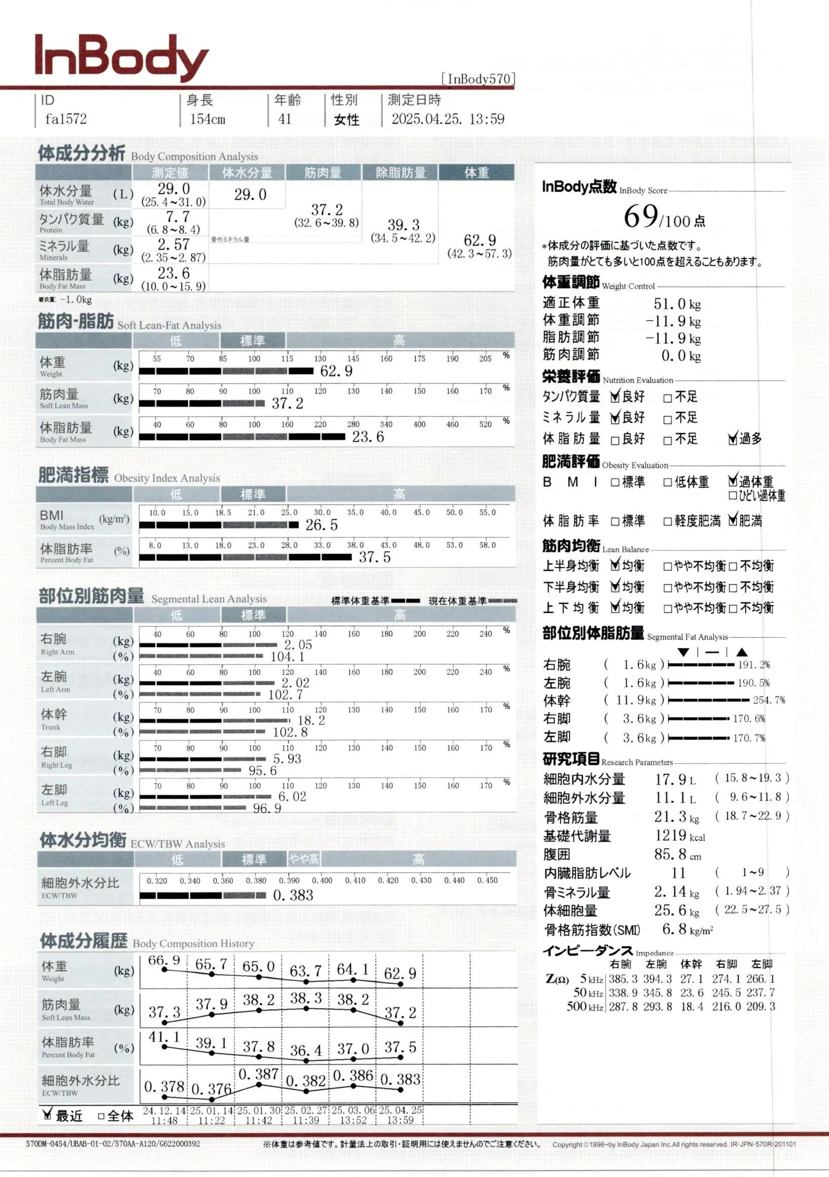 inbody計測結果