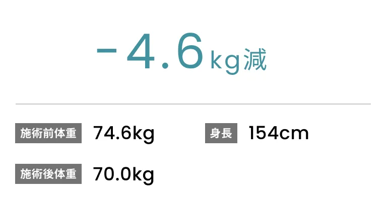 症例No.00123|74.6kg→70.0kg(40代女性・154cm)