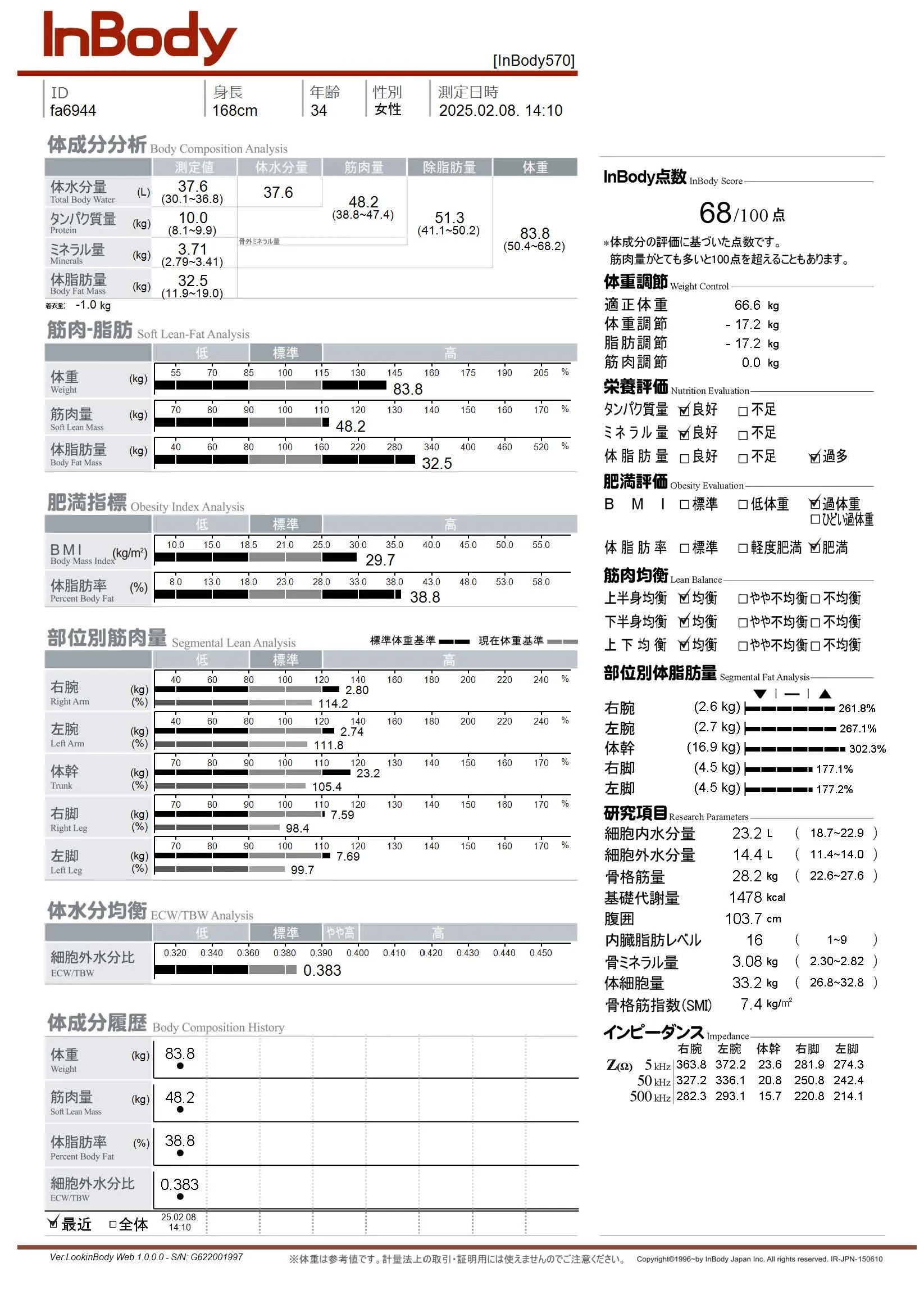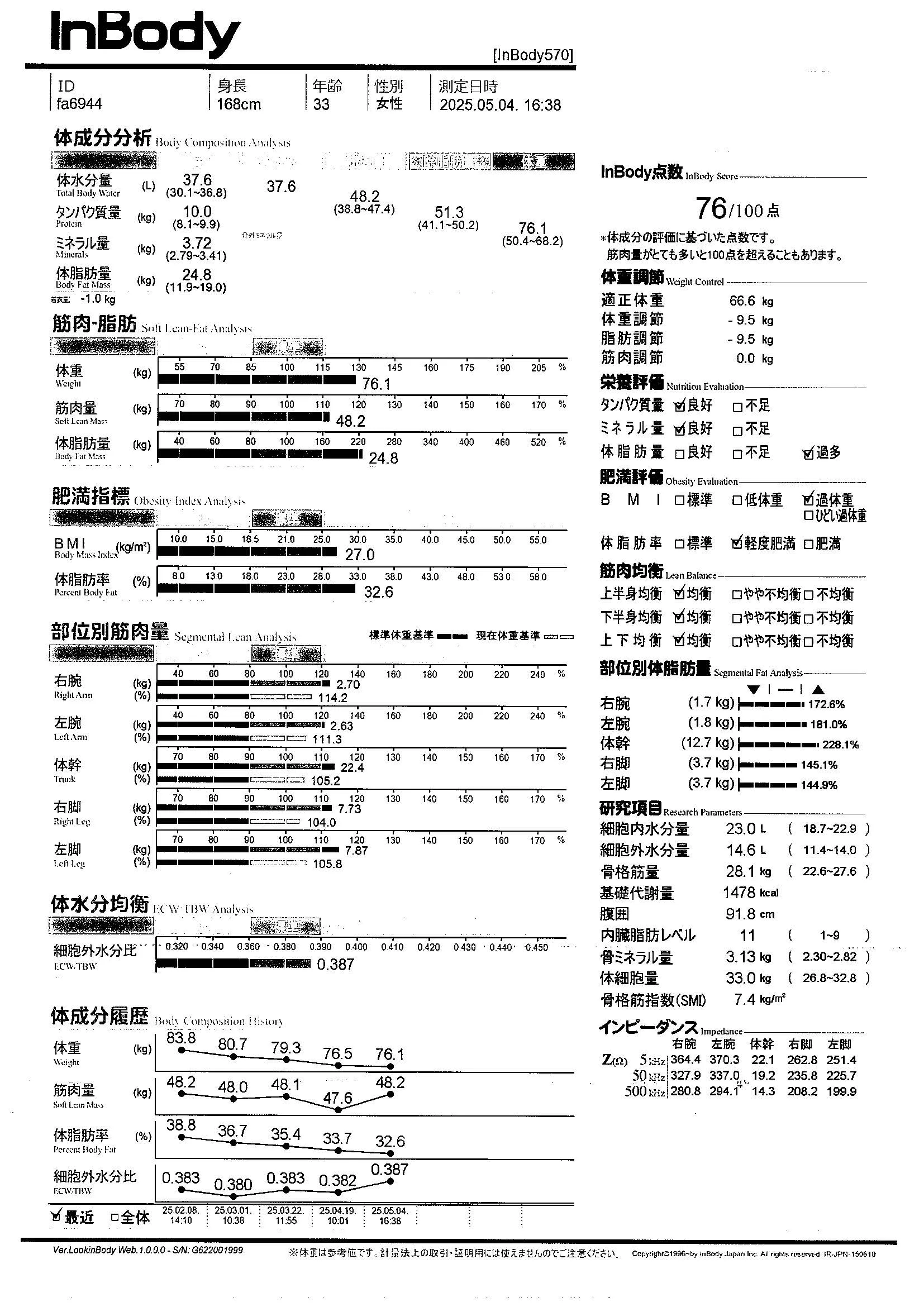 症例No.00135|83.8kg→76.1kg(30代女性・168cm)
