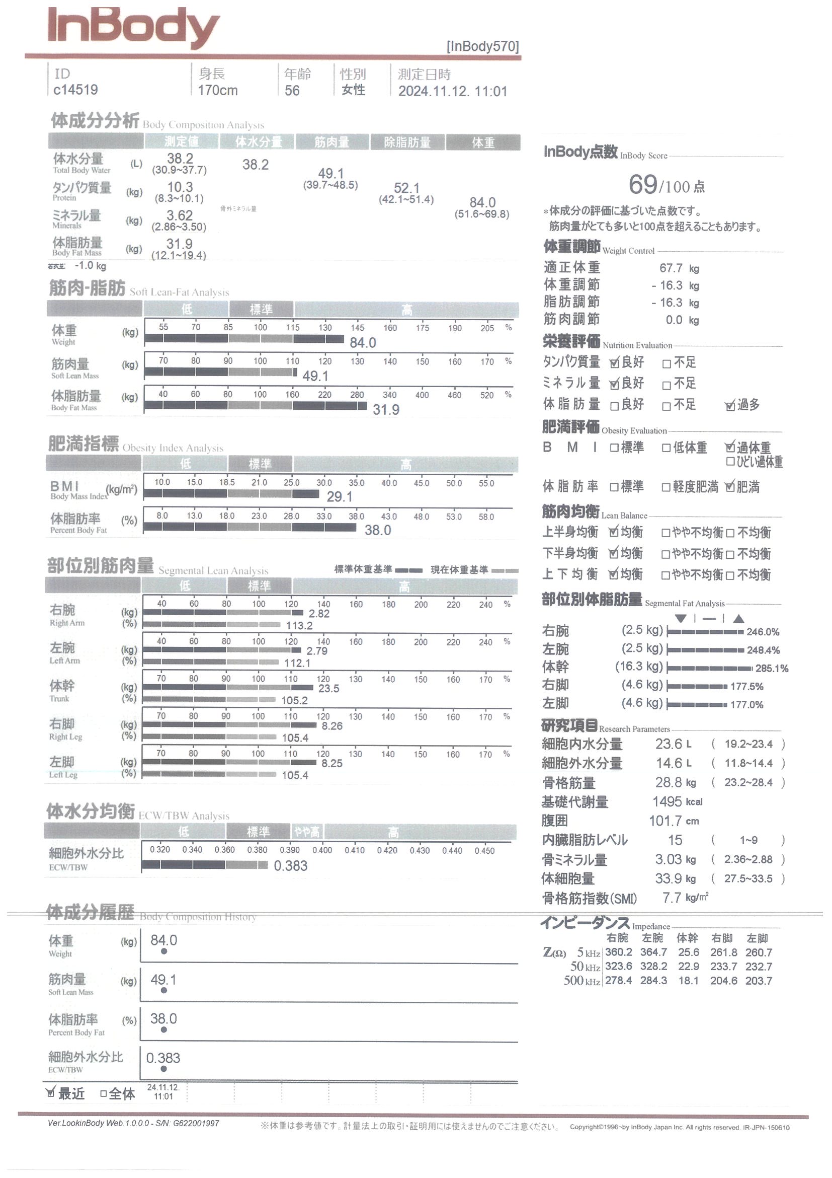 症例No.00137|84.0kg→73.9kg(50代女性・170cm)