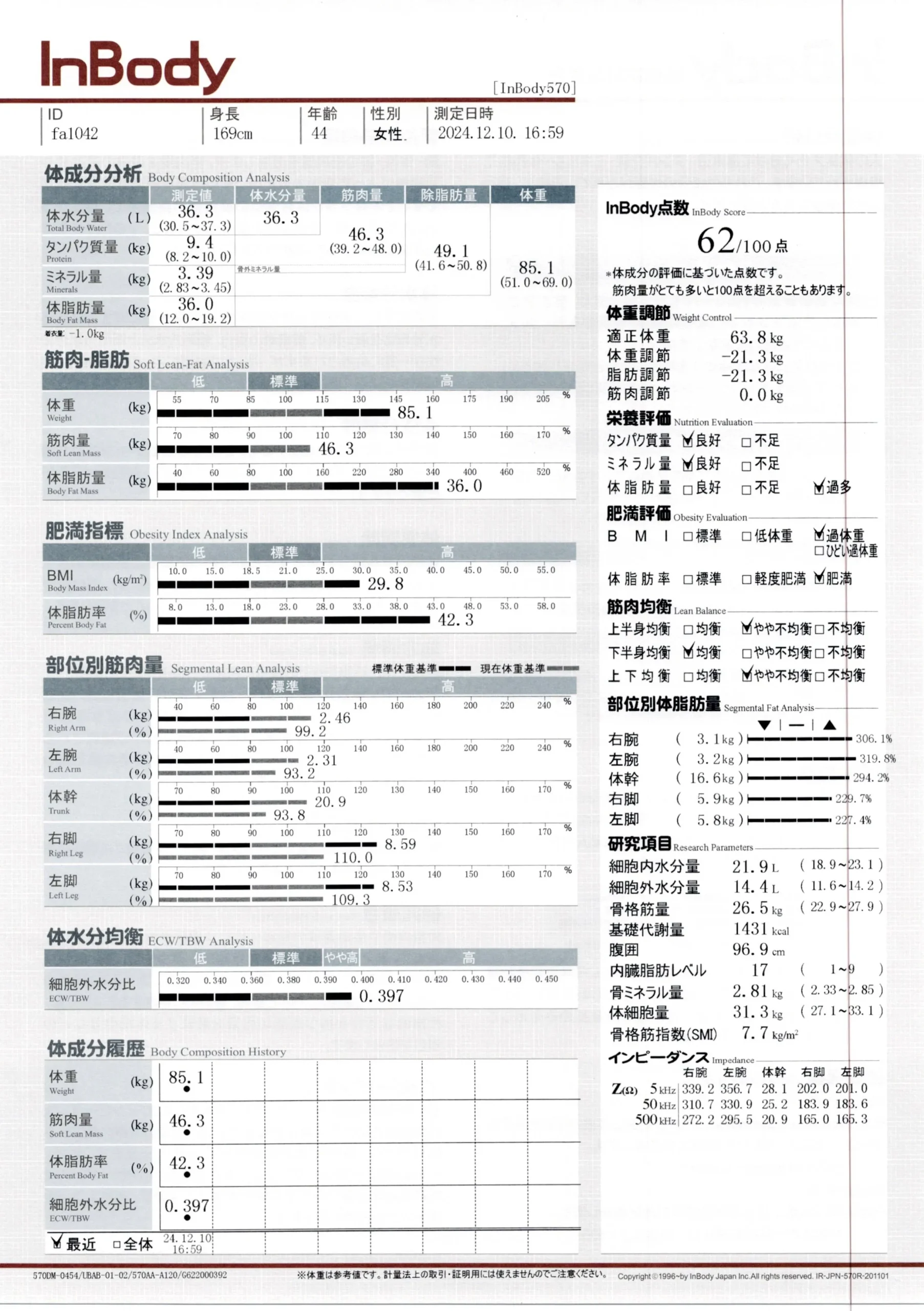 症例No.00138|85.1kg→71.3kg(40代女性・169cm)