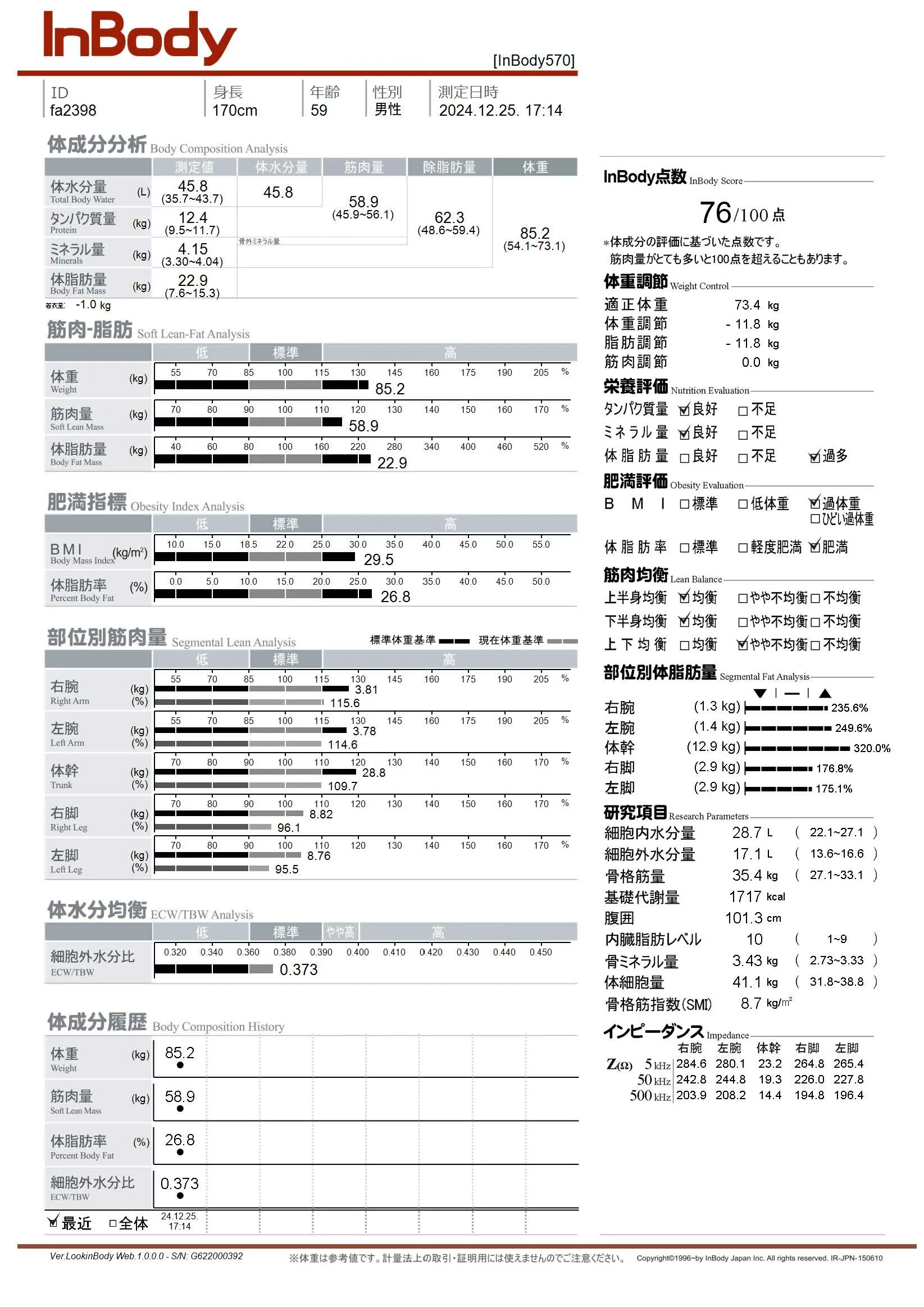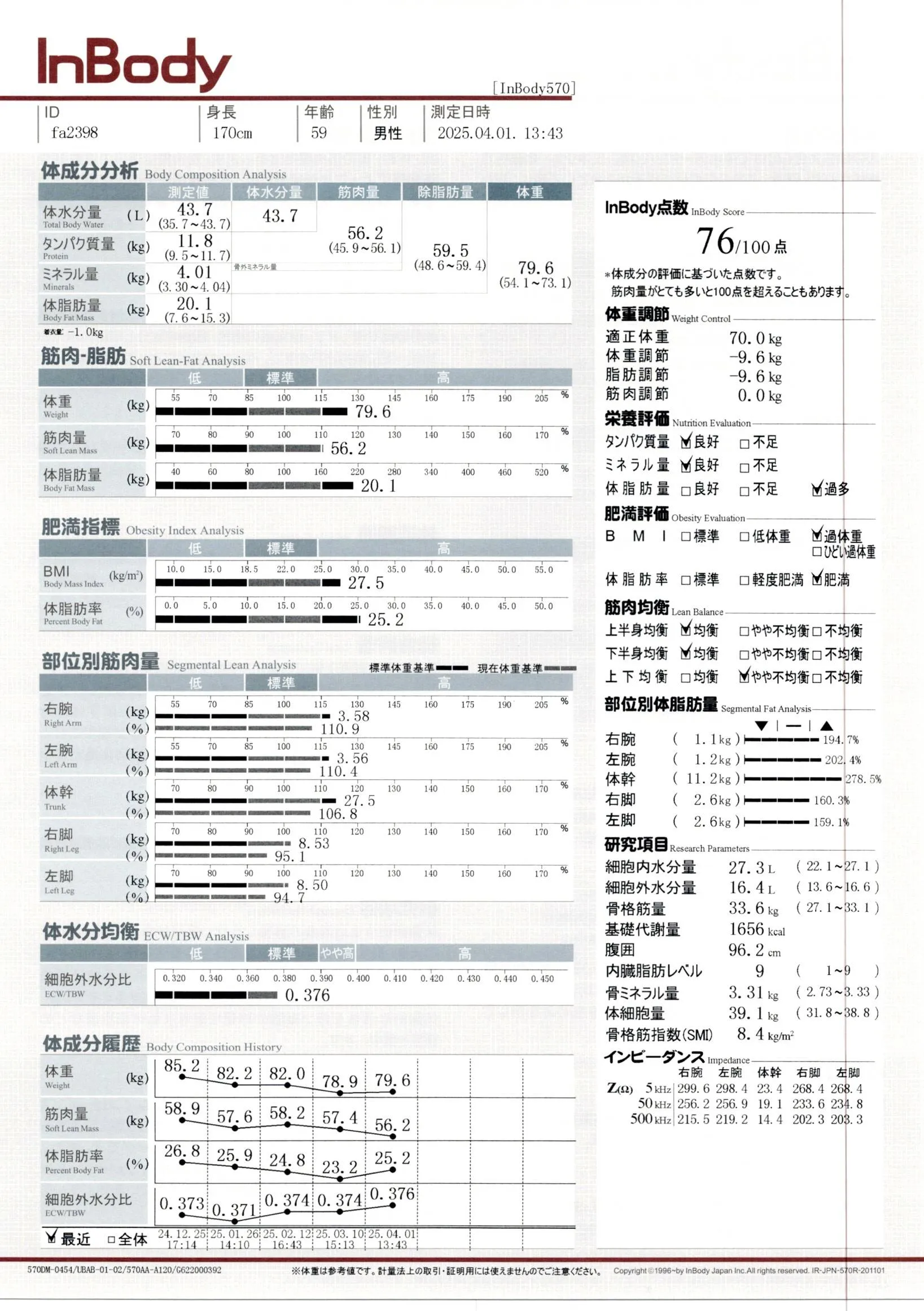 症例No.00140|85.2kg→79.6kg(50代男性・170cm)