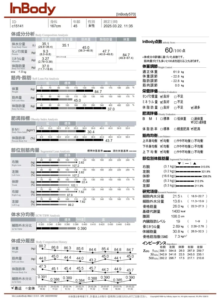 症例No.00156|92.2kg→84.7kg(40代女性・167cm)