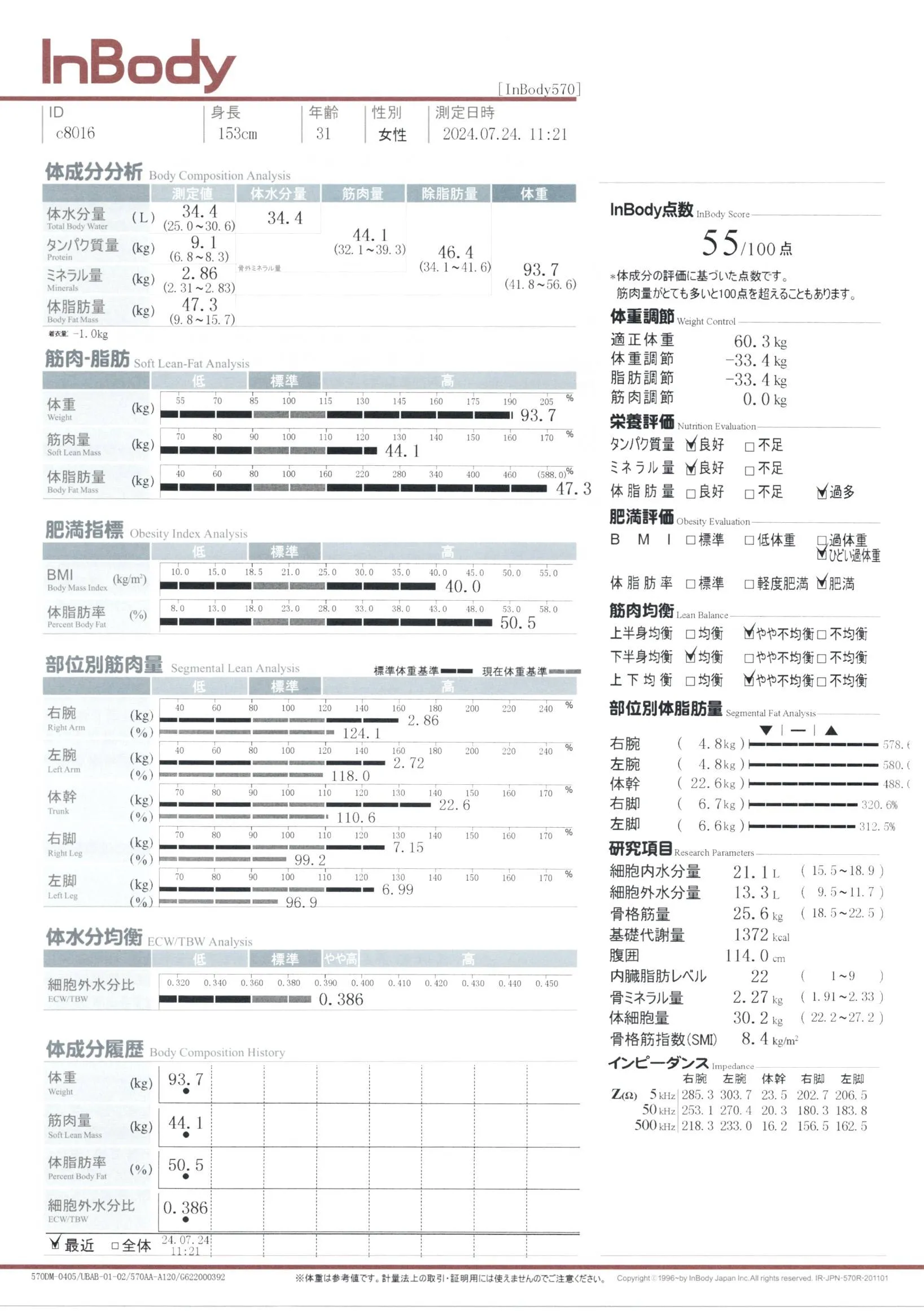 症例No.00158|93.7kg→76.7kg(30代女性・153cm)