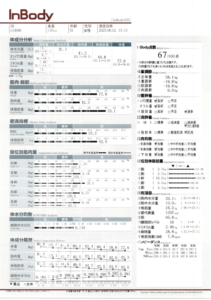 症例No.00174|79.7kg→69.1kg(60代女性・148cm)