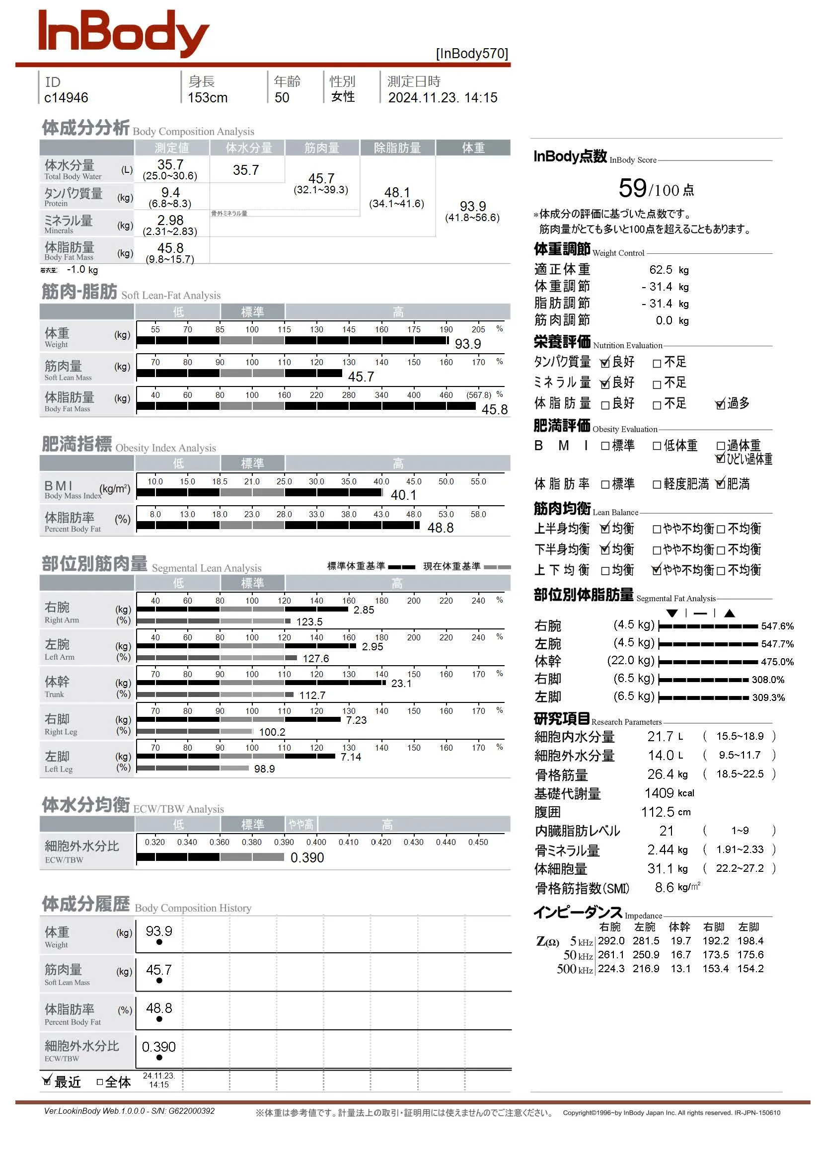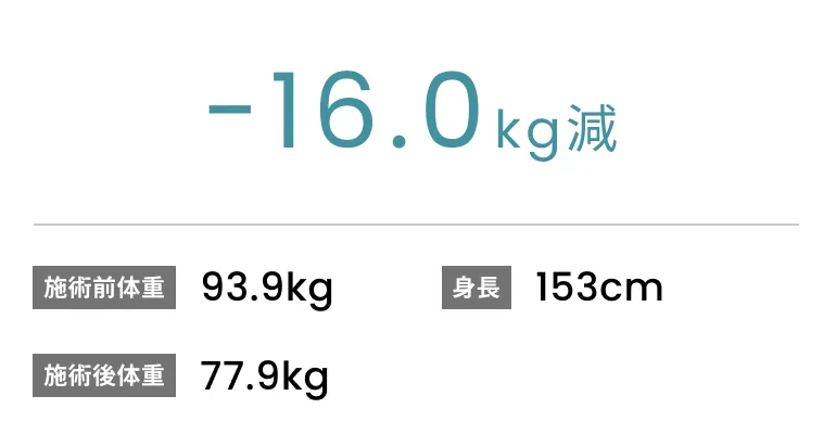 症例No.00159|93.9kg→77.9kg(50代女性・153cm)