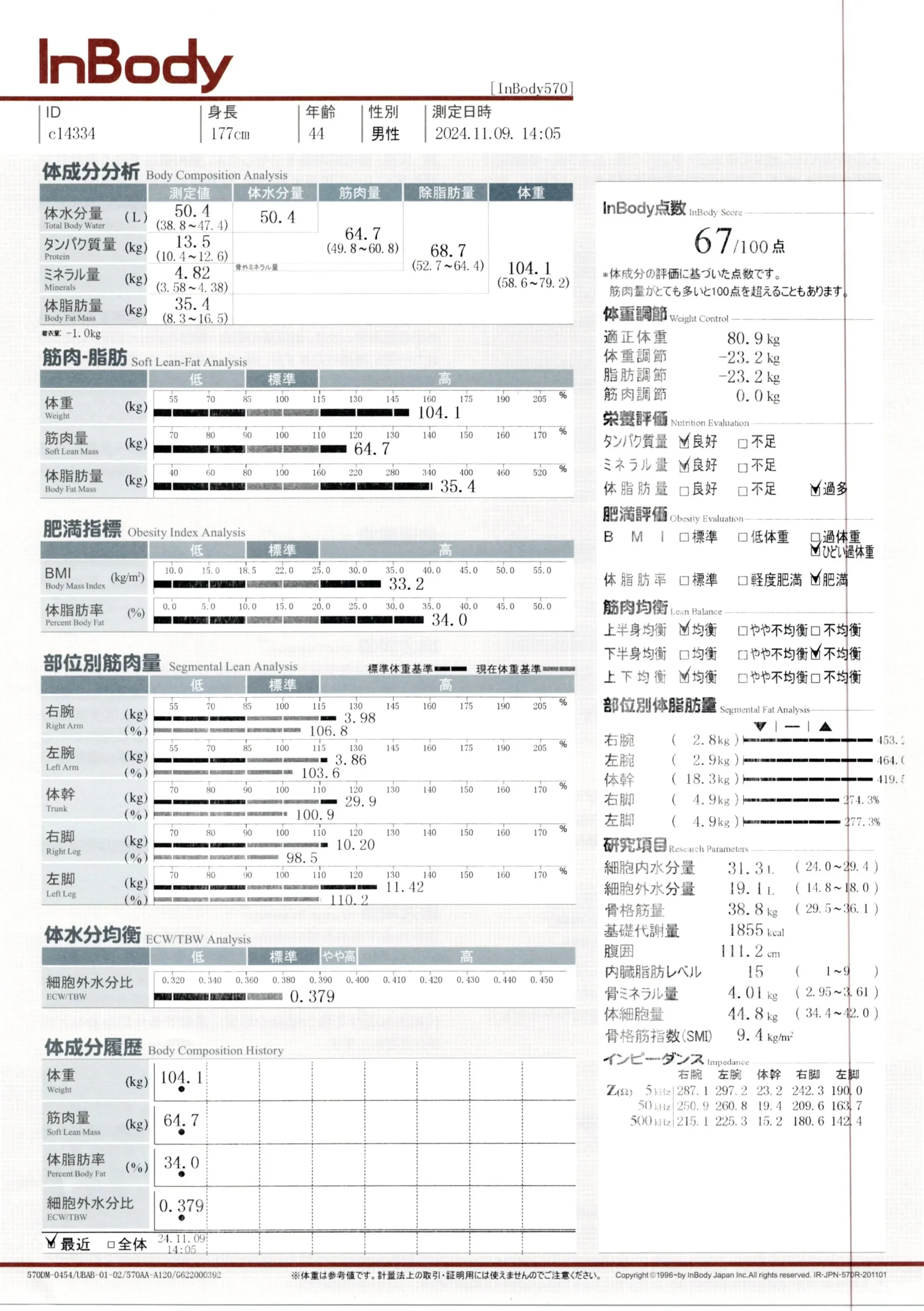 症例No.00167|104.1kg→90.3kg(40代男性・177cm)