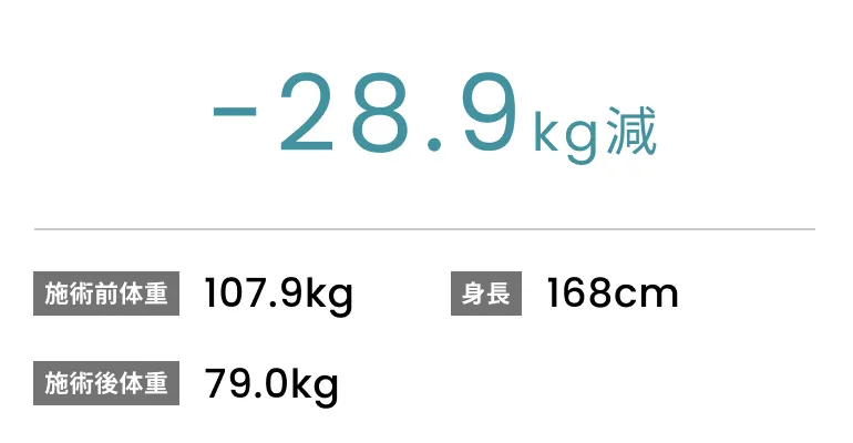 症例No.00168|107.9kg→79.0kg(50代男性・168cm)