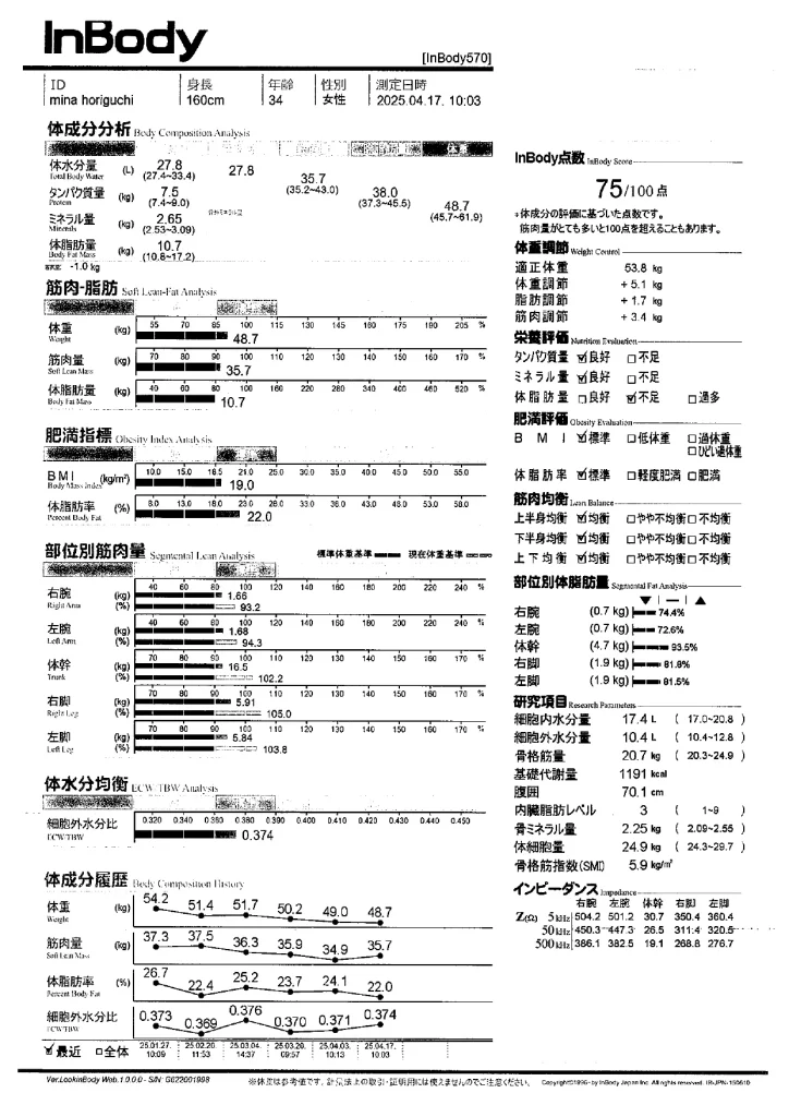 inbody計測結果
