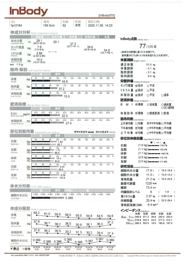 症例No.00174|79.7kg→69.1kg(60代女性・148cm)
