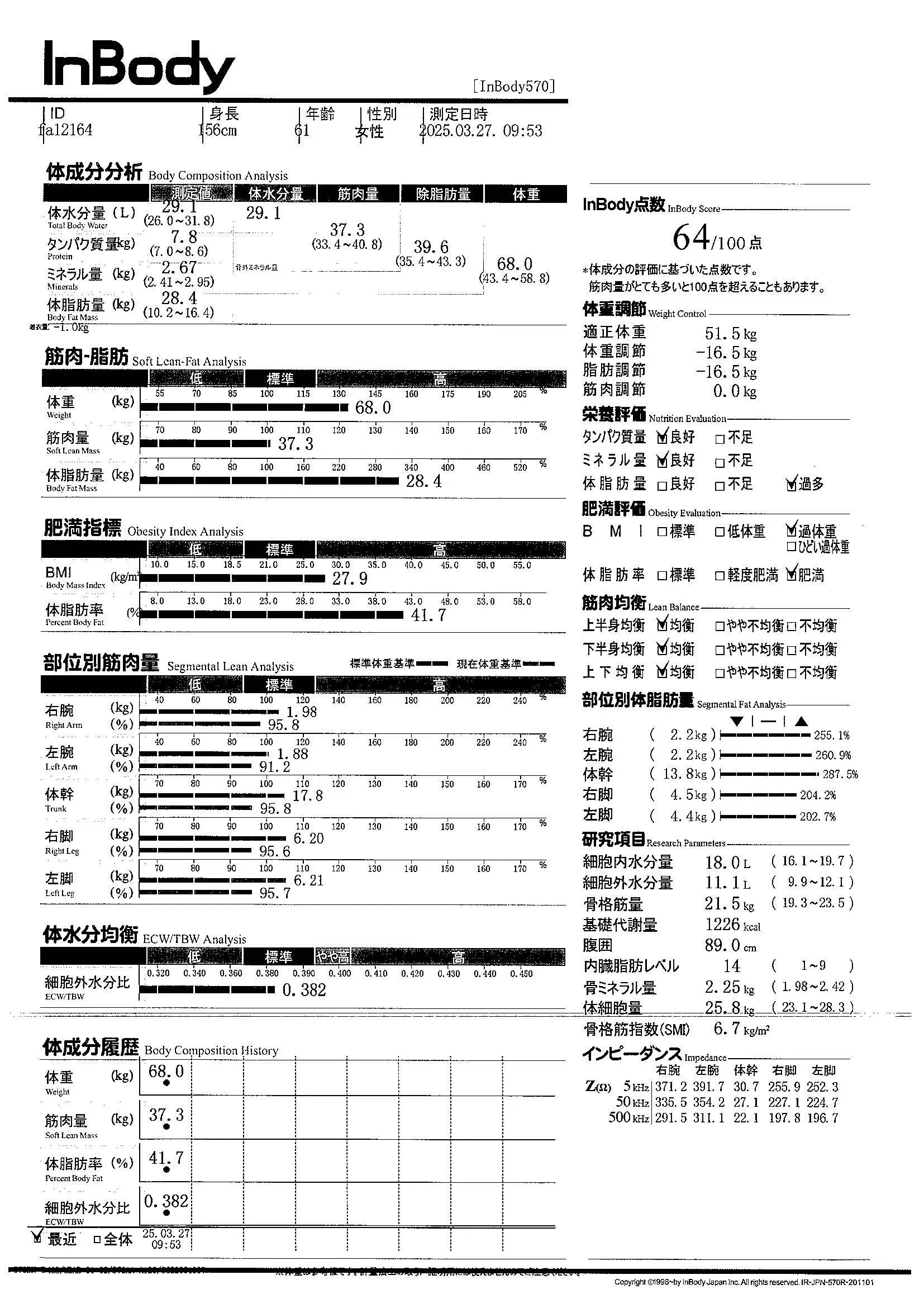 症例No.00183|68.0kg→54.6kg(60代女性・156cm)